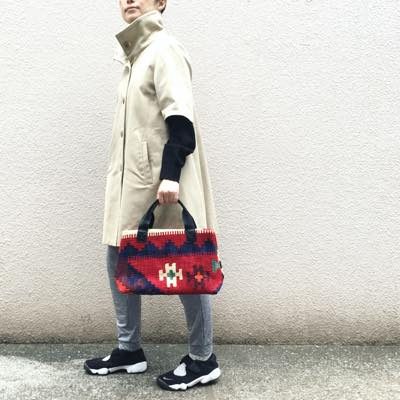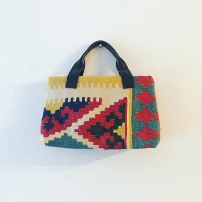イランのオールドキリムを使って仕立てたバッグは、