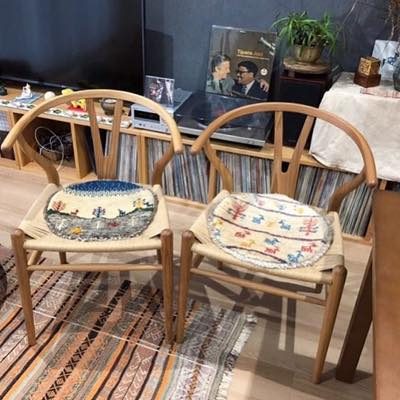 丸い椅子敷は、とってもめずらしい形。