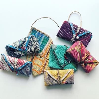インドの刺子ポーチが追加入荷しています。